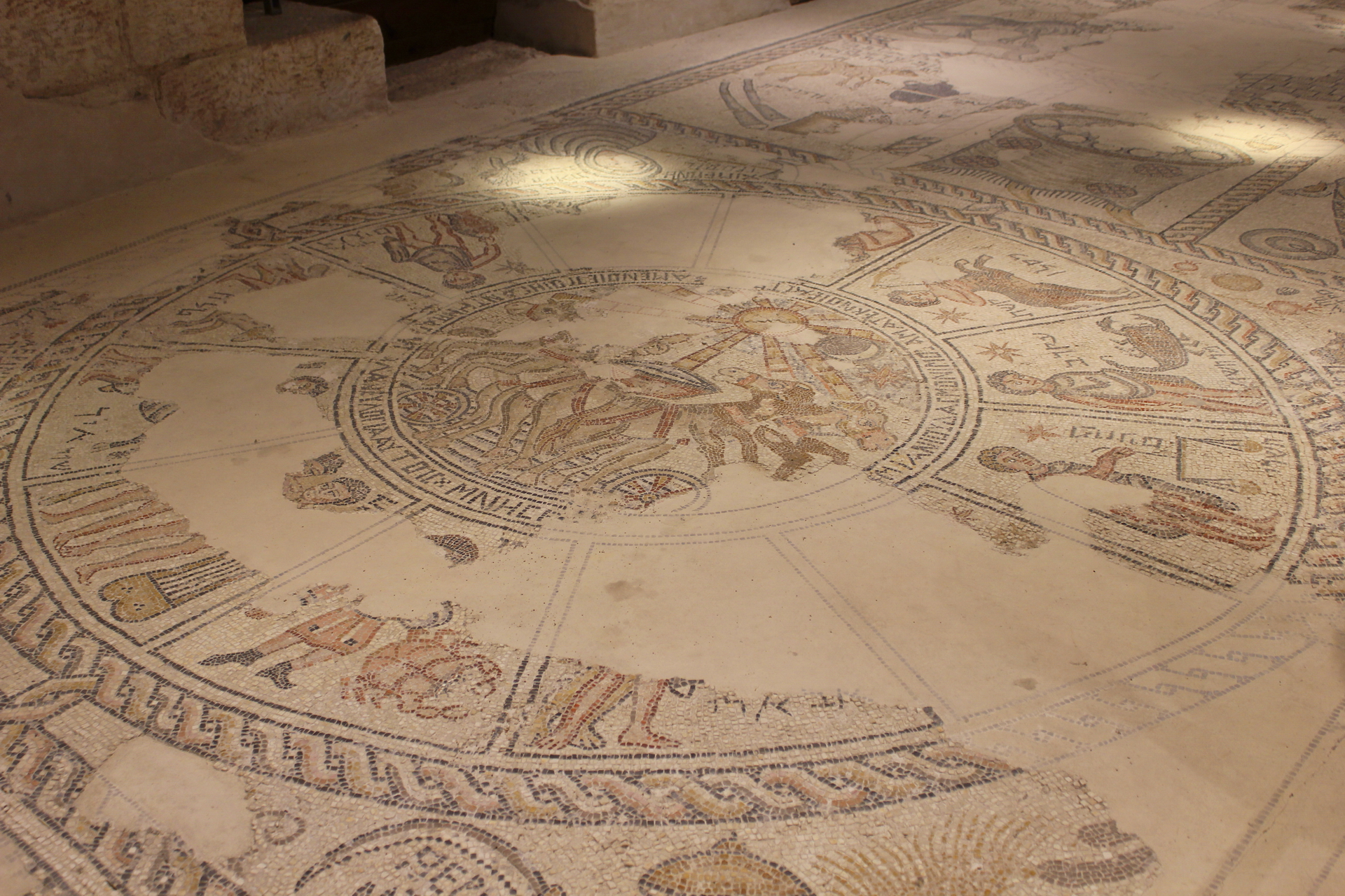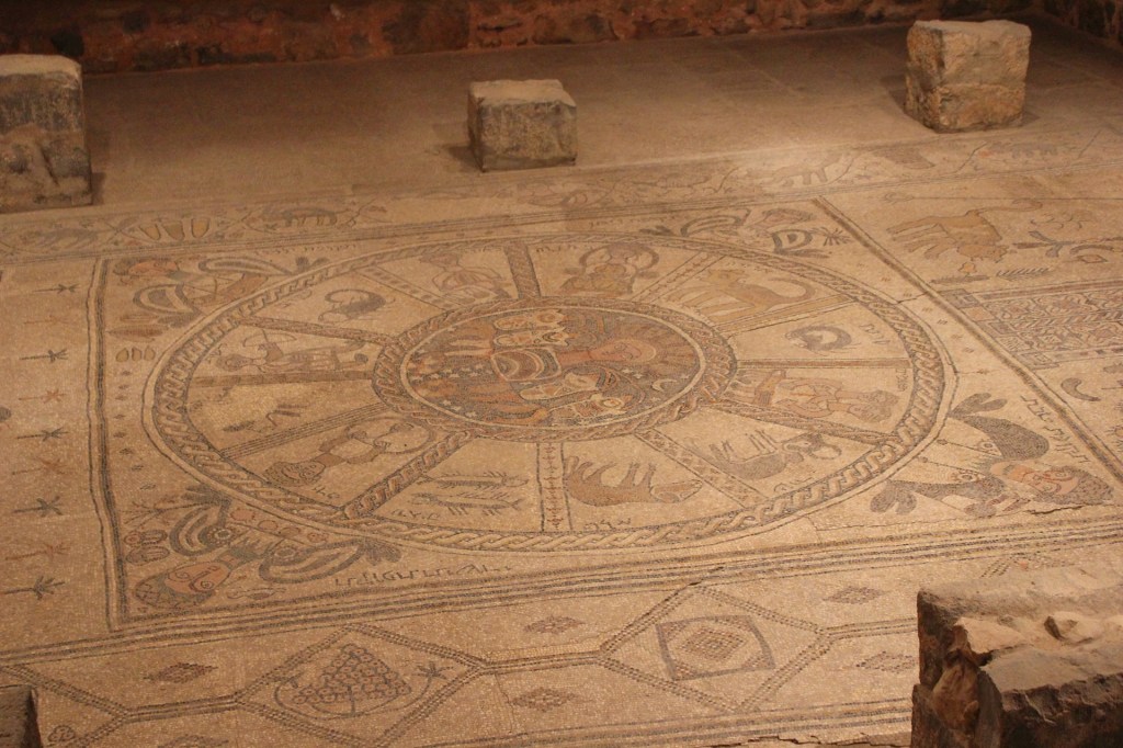 Bet Alpha Synagogue: floor mosaic with Helios/Sol at the center of a Zodiac, with the four seasons (photo © Daniel C Browning Jr)