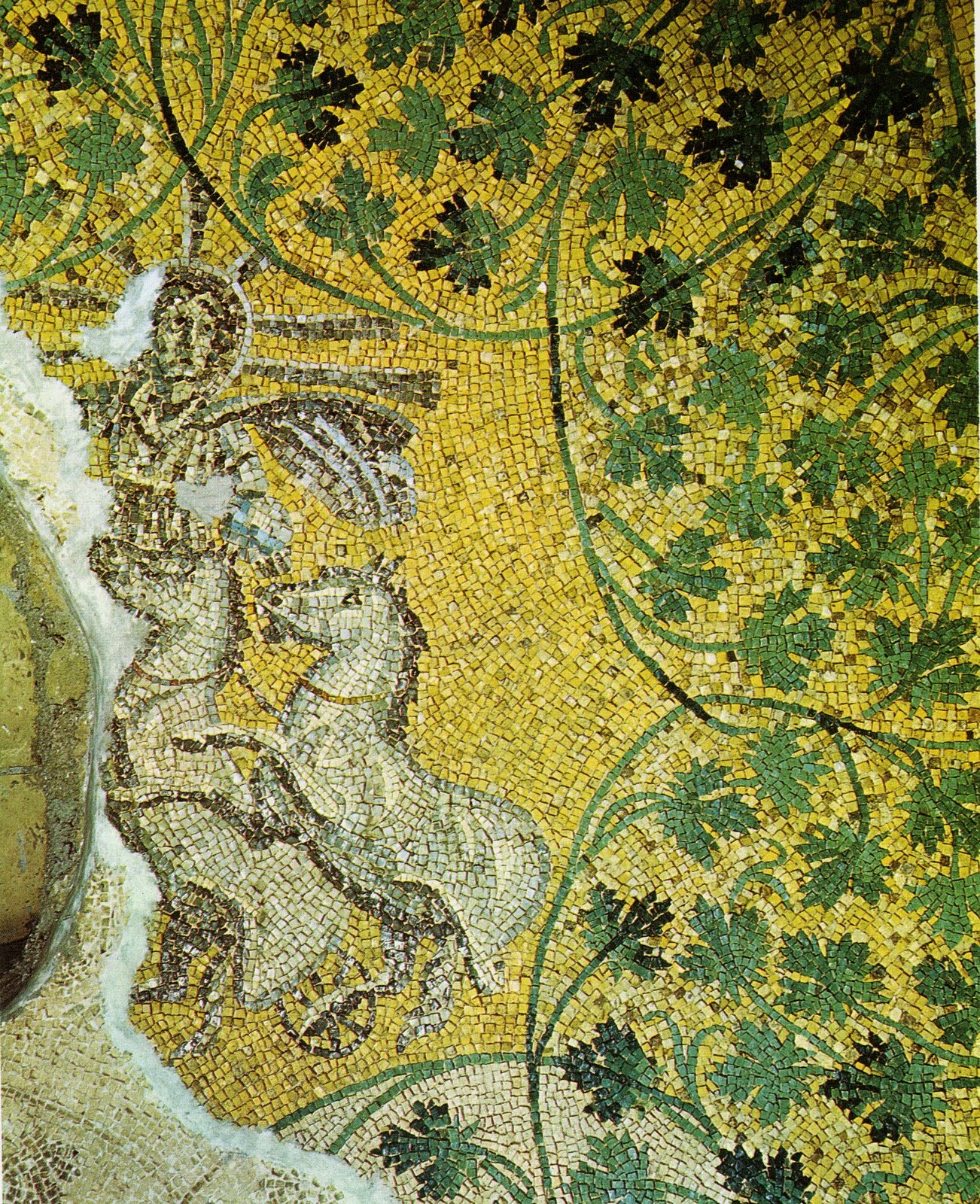 Perhaps the most interesting Helios/Sol image is found in a tomb in the necropolis under St. Peter’s Basilica in the Vatican. Mausoleum M contains an image, clearly of Helios/Sol, interpreted as representing Christ. Other details of the tomb are interpreted as Christian by Vatican scholars, obviously motivated to find Christianity in the necropolis containing the apparent tomb of St. Peter. They understand, however, that a Christian tomb depicting Christ in the manner of Sol Invictus does not threaten their theology nor invalidate the tomb owner’s faith.