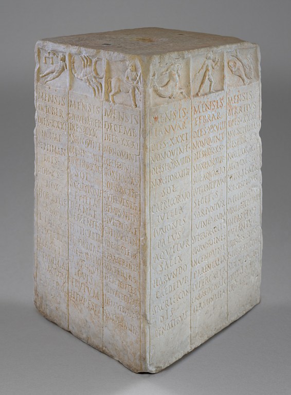 Roman Calendar Inscription (Menologium Rusticum Colotianum) with Zodiac, Festivals, and Agricultural Activities; © Institute for the Study of the Ancient World / Guido Petruccioli, photographer