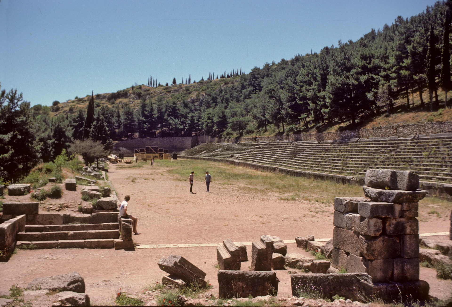 Finally, a couple of views of the best-preserved stadium in Greece; the one at the high point of the remains of ancient Delphi; home of the famous Oracle of Apollo: