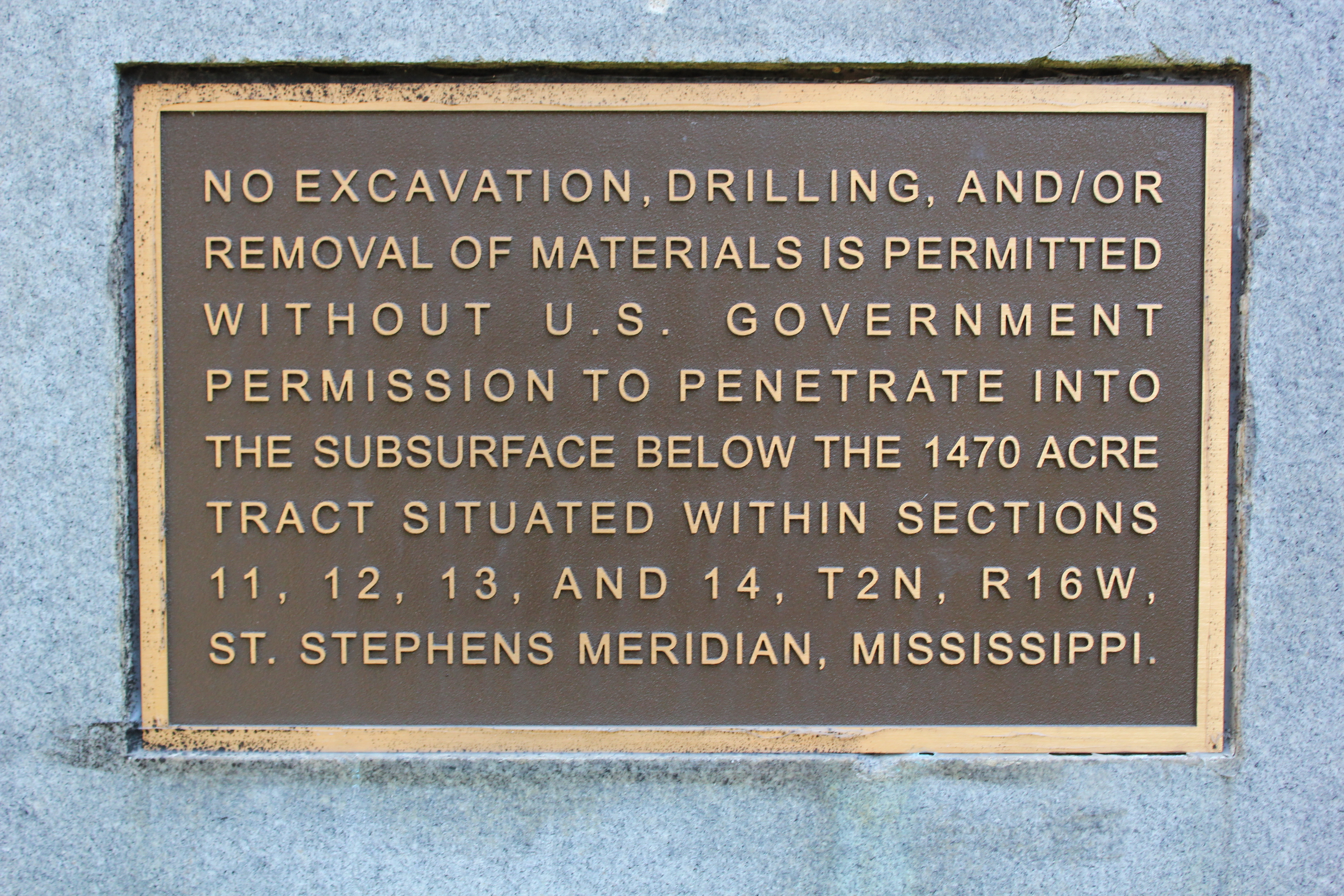 Today a concrete marker with two plaques marks the Surface Ground Zero of Mississippi, 2,710 feet above the detonation point and resulting radioactive chamber. It is a truly awkward monument. For starters, it is not easily visited, as the vehicle access “roads” are unmarked, gated, and locked. When the monument is finally reached, the main informational bronze plaque faces away from any who approach, as if embarrassed to reveal its story.