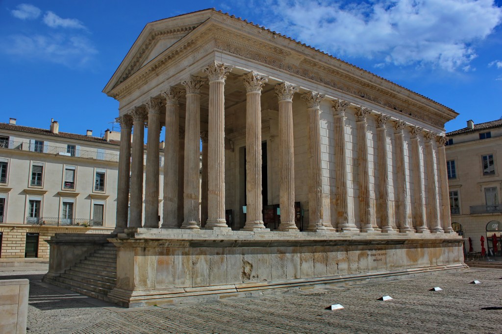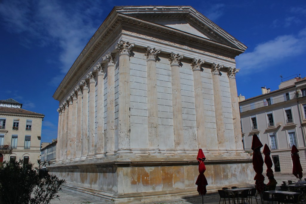 Happily, I was able to hit most important goals of my trip before the sudden need to return due to presidential fiat and cancelled flights. One of those targets was the Maison Carrée, one of the best-preserved of all Roman temples, in Nîmes, France.