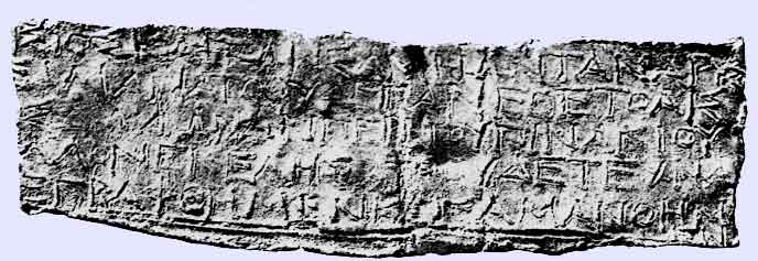 A lead tablet from Dodona (C. Carapanos, Dodone et ses ruines, Paris, 1878, pl. LX, 1).