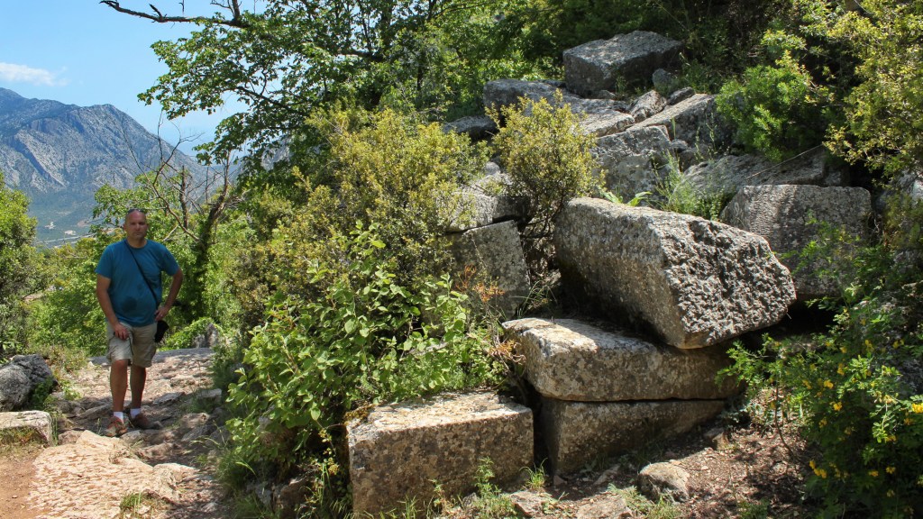 A “good” example (meaning I have pictures of its identifiable ruins) can be seen after a grueling climb up a barely-maintained trail to the mountaintop ruins of Termessos, on the far eastern edge of ancient Lycia in southern Turkey. There, just inside the main gate and attached to the inner face of the city wall, are the fallen blocks of a dice-oracle. One flat horizontal stone can be imagined as the surface on which the inquirer would throw the dice. The blocks on the wall above were covered with inscriptions giving the interpretation of each possible dice throw combination. In fact, the text at Termessos is quite similar to and consistent with those found at other dice-oracles in Asia Minor. In all cases, interpretations are given according to the total of the values of the sides from the dice thrown. From them, we can see that astragali were used because only the face values 1, 3, 4, and 6 were accounted for in the calculations. In most dice-oracles, five throws were assumed, but the Termessos gate example called for seven! The order did not matter but the exact method of obtaining the sum did, in cases where different combinations yielded the same number. Each specific outcome was listed with: the astragali face numbers, the sum of the throw, the result named for god or other mythological character, and a verse interpretation (not unlike a fortune cookie).[2]